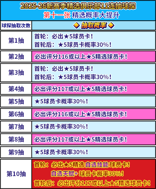 【2025-26新赛季精选俱乐部·11连抽球探】