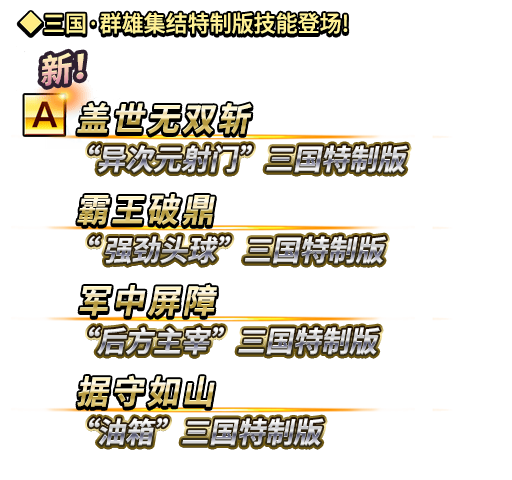 *全新三国·群雄集结特制版技能【盖世无双斩】、【霸王破鼎】、【军中屏障】、【据守如山】也将登场!