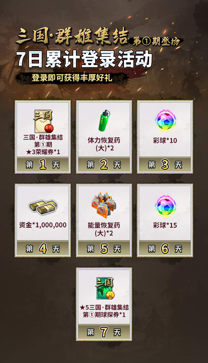 【三国·群雄集结第①期登场·7日累计登录活动】